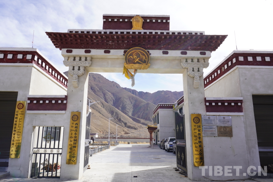 中國(guó)西藏網(wǎng)訊 冬日的早晨,西藏自治區(qū)日喀則市南木林縣艾瑪鄉(xiāng)深處不時(shí)傳出叮當(dāng)?shù)那宕啻驌袈?,這是西藏孜東金銅制佛古藝中心的學(xué)徒們正在打造新的作品。