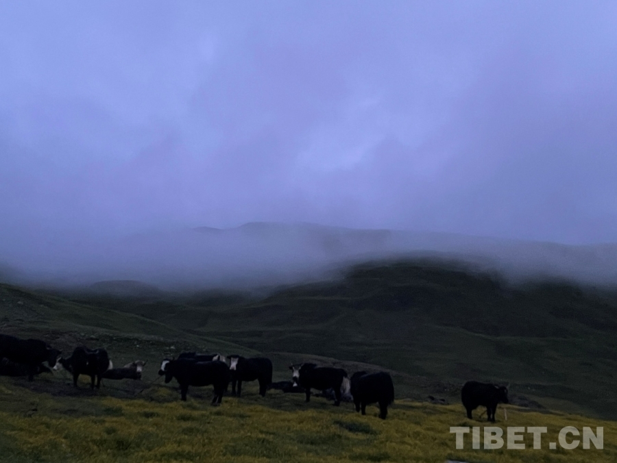 過了一會兒,天邊漸漸卷起了一個白邊,然后越來越大。后來,遠處的山、河、帳篷、牛羊都逐漸清晰了。這時,我們的工作也接近尾聲。一回頭,看到我家?guī)づ耥數(shù)臒焽枥锷鹆搜U裊炊煙,我知道,爸爸已經準備好了早餐,等著我們回家了。(中國西藏網(wǎng) 實習生/扎西央措)