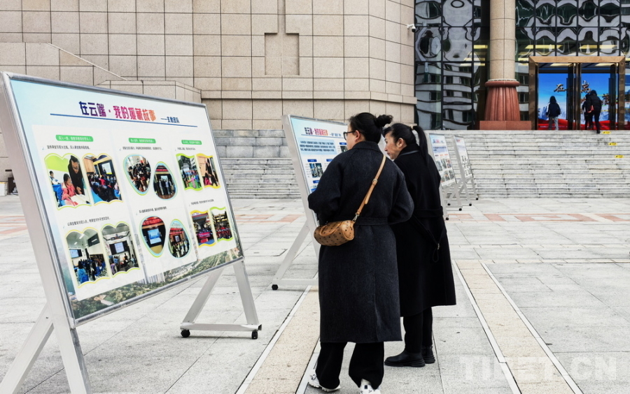 圖為“在云端·我的援藏故事”宣傳活動(dòng)場(chǎng)外,行人正在觀看展板  攝影:劉莉