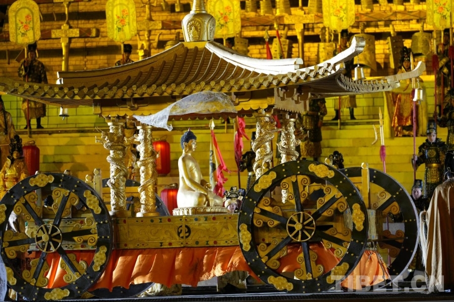 圖為《文成公主》大型實(shí)景劇中文成公主入藏,將釋迦牟尼12歲等身像帶到拉薩的場景。攝影:德吉卓瑪