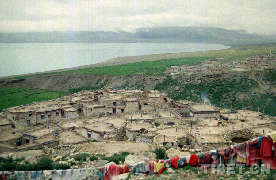圖為當(dāng)惹雍錯湖畔的尼瑪縣文部鄉(xiāng)南村(唐召明1987年攝)