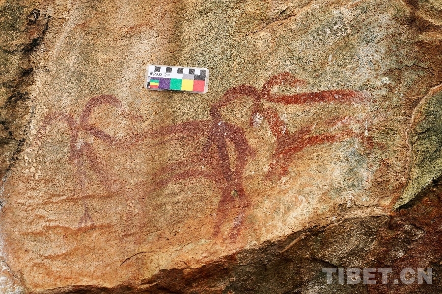 甘孜南路的涂繪類巖畫也揭示出兩個現(xiàn)象:一是舊石器人群在青藏高原消失的時間非常晚;二是從巖畫分布來推斷,這群人是從低海拔地區(qū)遷徙上來的,這意味著甘孜地區(qū)人類交流活動可追溯到史前的舊石器時代。