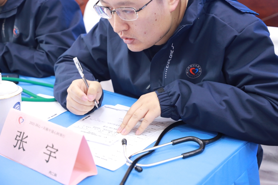 圖為北京市通州區(qū)婦幼保健院藥劑科主任馬月靜根據(jù)現(xiàn)場情況做相應記錄。此次義診結束后,馬月靜還為干警們進行了安全用藥科普知識講座 攝影:楊月云