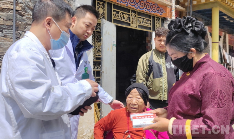 當日上午,醫(yī)療專家們乘車從日部鄉(xiāng)鎮(zhèn)前往讓古寺巡診的路上,一位中年女性攔停了車輛。原來,她82歲的奶奶患有多種疾病又行動不便。聽說有大城市來的醫(yī)療專家正在當?shù)亓x診,她輾轉打聽到有可能車輛會路過家門口,于是一大早就和奶奶一起等在了路邊。看到掛著“同心·共鑄中國心”橫幅的車輛來了,她就趕緊跑到路邊攔車,希望專家們能幫奶奶看病。