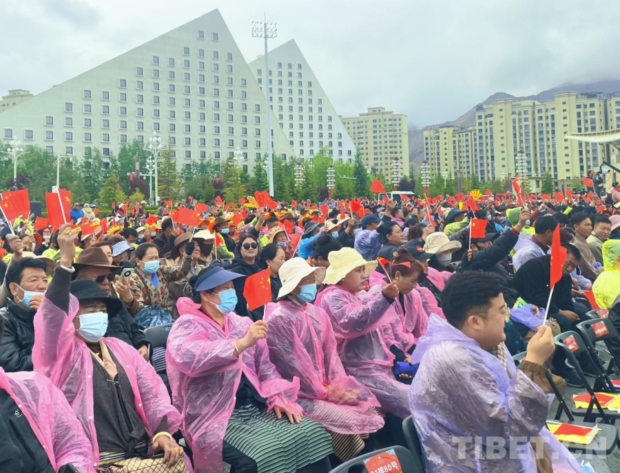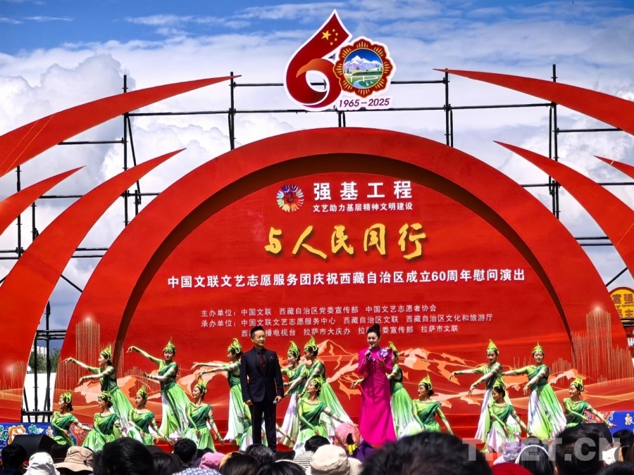 中國西藏網(wǎng)訊 5月25日上午,由中國文聯(lián)、西藏自治區(qū)黨委宣傳部、中國文藝志愿者協(xié)會共同主辦的慶祝西藏自治區(qū)成立60周年慰問演出“與人民同行”在拉薩會展中心廣場舉行,4000多名干部群眾一同觀看演出。