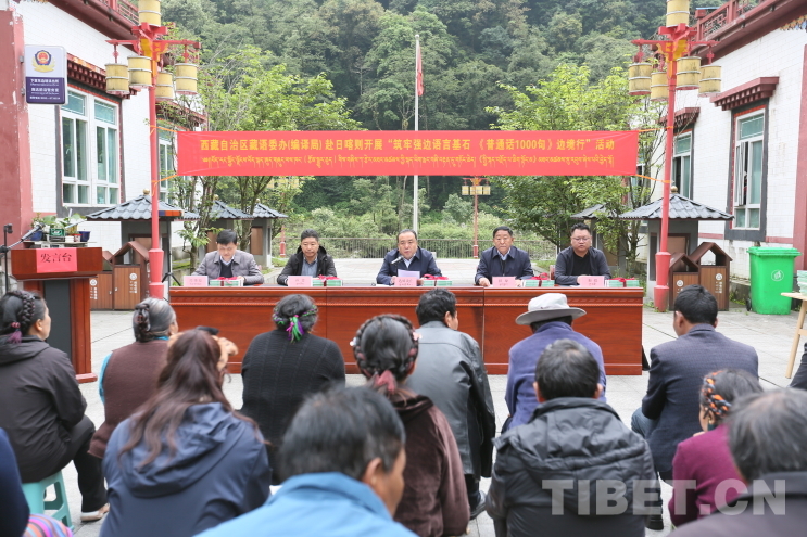 活動(dòng)期間,西藏自治區(qū)藏語(yǔ)委辦(編譯局)有關(guān)領(lǐng)導(dǎo)向參加活動(dòng)的干部群眾贈(zèng)送了《普通話1000句》漢藏對(duì)照版書籍。活動(dòng)現(xiàn)場(chǎng),還為基層群眾上了一堂學(xué)習(xí)國(guó)家通用語(yǔ)言文字的示范課。