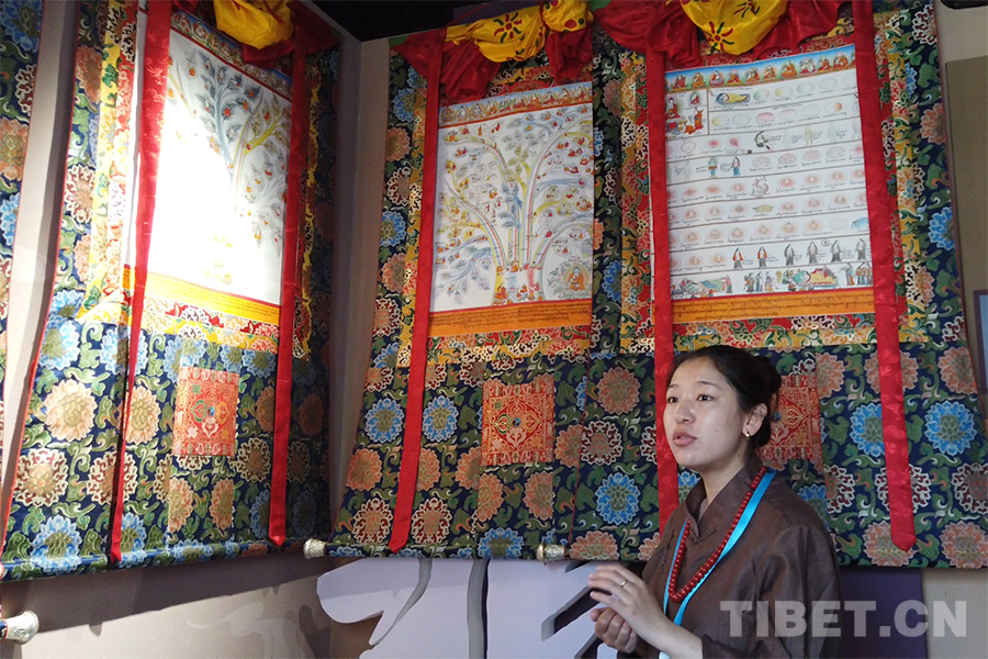 圖為那曲市輪展現(xiàn)場,來自嘉黎縣藏醫(yī)院的次旦拉姆介紹藏醫(yī)藥唐卡 攝影:楊月云