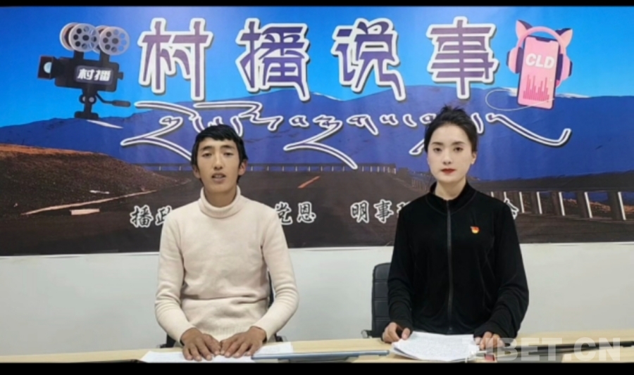 圖為次仁嘎措與她的搭檔在播《村播說事》 受訪者供圖