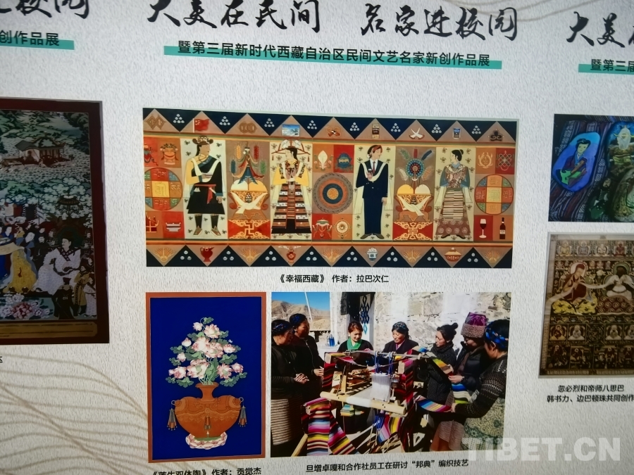 6月20日,“大美在民間——名家進校園暨第三屆新時代西藏自治區(qū)民間文藝名家新創(chuàng)作品展”開展。圖為展覽陳列 攝影:趙釗