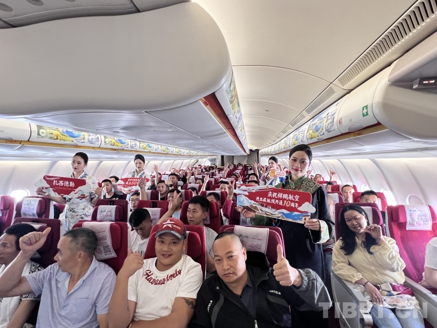 中國(guó)西藏網(wǎng)訊 6月20日,祥鵬航空8L9669成都-拉薩航班上,一段飽含深情的客艙廣播拉開(kāi)特別旅程的序幕:“潔白哈達(dá)獻(xiàn)真情,云端共敘一家親。今天,我們共同見(jiàn)證祥鵬航空首條進(jìn)出藏航線成都-拉薩航線安全運(yùn)營(yíng)十周年。2025年恰逢西藏自治區(qū)成立60周年,這條承載著祥鵬航空美好祝愿的哈達(dá),既是對(duì)偉大時(shí)代的禮贊,更象征著各族兒女在黨的領(lǐng)導(dǎo)下親如手足的深厚情誼。愿這份吉祥如意伴您一路同行,在萬(wàn)里長(zhǎng)空絢麗綻放!”