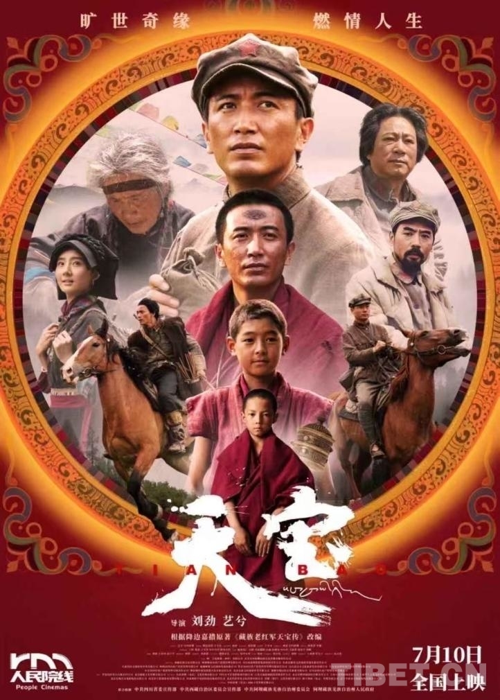 電影《天寶》改編自作家降邊嘉措的傳記文學(xué)作品《藏族老紅軍天寶傳》,影片以天寶(原名桑吉悅希)從少年到中年時(shí)代的真實(shí)經(jīng)歷作為創(chuàng)作素材,全景式講述了桑吉悅希從僧人,到參加紅軍、三過草地,在延安中央黨校民族班學(xué)習(xí)期間被毛澤東主席改名為“天寶”,后又參加和平解放西藏等,歷經(jīng)千錘百煉和血與火的洗禮,最終成為中國共產(chǎn)黨的優(yōu)秀黨員、忠誠的共產(chǎn)主義戰(zhàn)士的革命英雄事跡。