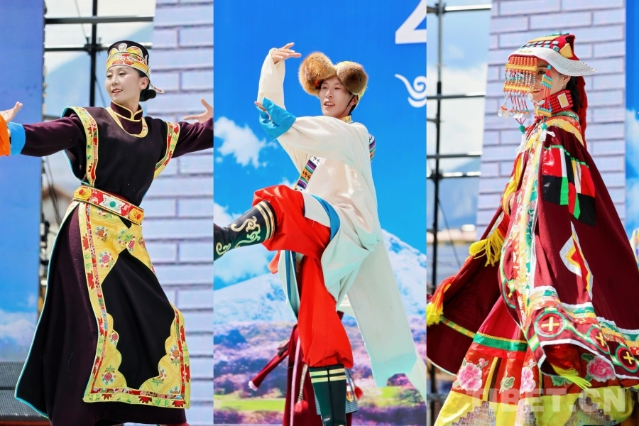 圖為比賽現(xiàn)場西藏不同地市的精美服飾展示