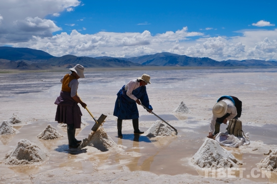 擦咔鄉(xiāng)素有“藏北鹽倉”之稱,其“章倉三湖”鹽礦資源豐富,采鹽史可追溯至千年前。古時,當(dāng)?shù)佧}幫以羊馱牛背的方式,將鹽巴運(yùn)往普蘭、日喀則甚至印度、尼泊爾等地,形成了著名的“鹽羊古道”。這一傳奇不僅見證了當(dāng)?shù)厝罕姷闹腔叟c勤勞,更在1951年支援先遣連進(jìn)藏時發(fā)揮了重要作用,被譽(yù)為“革命的鹽、民族團(tuán)結(jié)的鹽”。