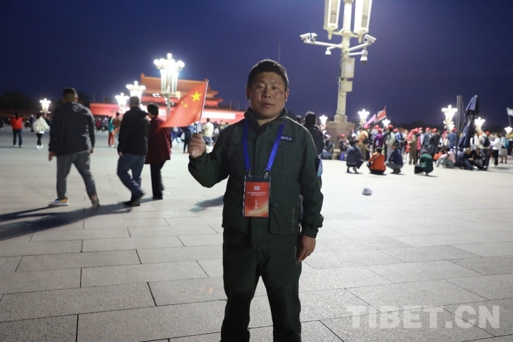 圖為2024年4月,扎西索朗在天安門(mén)廣場(chǎng) 攝影:莫干措(資料圖)