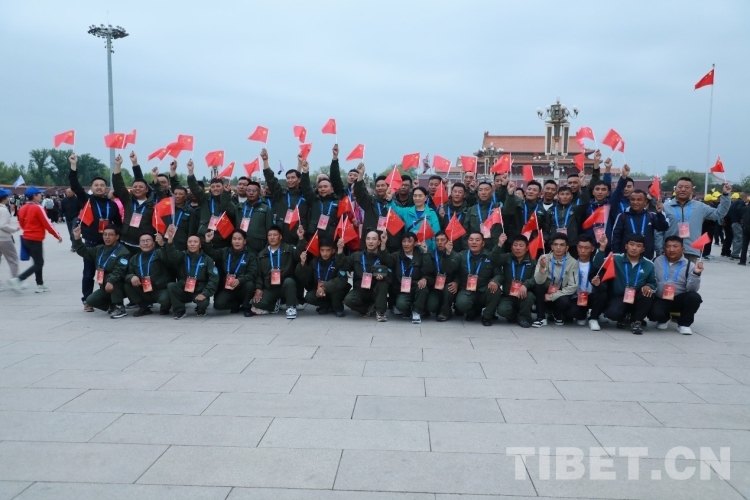 圖為2024年4月,“西藏自治區(qū)野生動(dòng)物保護(hù)員進(jìn)京考察學(xué)習(xí)團(tuán)”成員觀看升旗儀式并集體合影留念 攝影:莫干措 (資料圖)