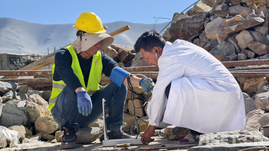 健康守護(hù)網(wǎng),筑牢重建防線。月初頂層澆筑時,施工隊員老張不慎踩中鐵釘。駐村工作隊立刻協(xié)同村醫(yī)貢嘎旦增現(xiàn)場處置,全程跟蹤治療確保傷口未感染。貢嘎旦增的足跡遍布工地,開展健康服務(wù)5輪,測量血壓47人次,發(fā)放常用藥品30余份,覆蓋200余人。鄉(xiāng)衛(wèi)生院院長為19名群眾定制慢性病方案,藏醫(yī)拉姆的“呼吸調(diào)節(jié)法”更有效舒緩了70余人的心理焦慮。