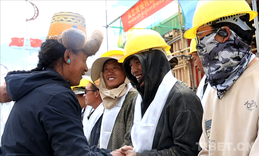 圖為定日當(dāng)?shù)厝罕娢繂?wèn)建設(shè)者