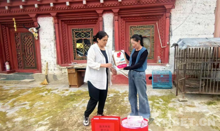 中國西藏網訊 近日,四川省甘孜藏族自治州得榮縣婦聯、縣文明辦工作人員來到太陽谷鎮(zhèn)松堆村,將州級“最美家庭”榮譽送到村民扎西拉姆家。這份榮譽不僅是對他們多年來在家風建設、文化傳承、公益服務中突出表現的肯定,更讓新時代文明實踐的“種子”落地生根。