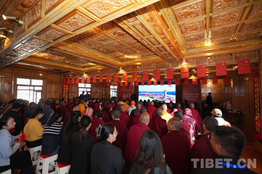 中國西藏網(wǎng)訊 9月3日上午,紀念中國人民抗日戰(zhàn)爭暨世界反法西斯戰(zhàn)爭勝利80周年大會在北京天安門廣場隆重舉行,以盛大閱兵儀式,同世界人民一道紀念這個偉大的日子,共同開創(chuàng)更加光明的未來。同一時刻,在云南省迪慶藏族自治州香格里拉市松贊林寺,130余名我國宗教界人士觀看大會直播,共同見證這一歷史性時刻,感受新時代中國國防力量,激蕩愛國愛教情懷。