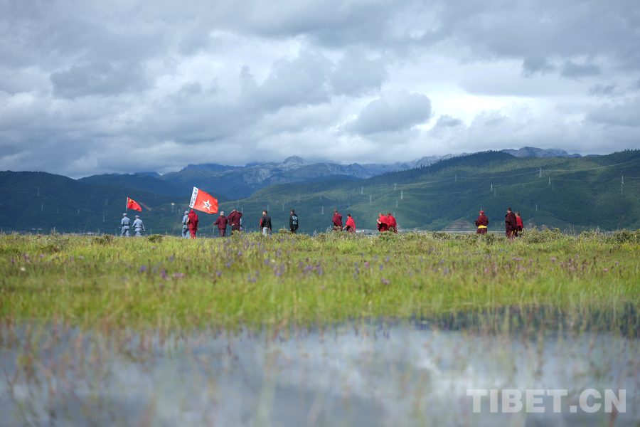 圖為“重走長征路”活動中,迪慶州我國宗教界人士沿著先輩足跡行進噶丹·松贊林寺供圖