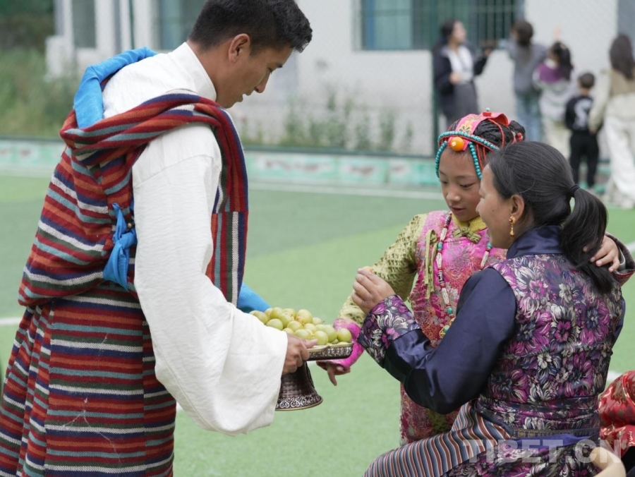 大家圍坐交流,家長們細(xì)致講述藏裝配飾的象征意義,孩子們認(rèn)真聽著縣群團(tuán)工作部老師講述節(jié)日傳說。在服飾走秀環(huán)節(jié),藏族少女白瑪央吉牽著妹妹的手款款走來,盡顯藏族服飾的華美與端莊;鍋莊舞表演時(shí),人們手拉手,舞步踏響同一節(jié)奏。品嘗特色美食時(shí),亞東李子、奶渣、鮭魚罐頭等特色美食登臺(tái)亮相。支教團(tuán)成員與家長化身“美食代言人”,盡情分享美食,樂在其中。