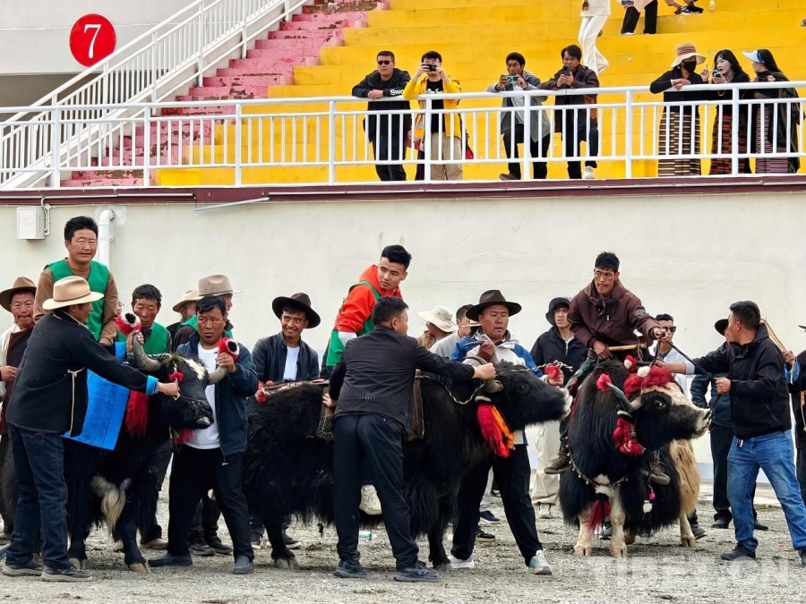 中國西藏網(wǎng)訊 9月7日,西藏自治區(qū)日喀則市江孜縣舉行了2025年達(dá)瑪節(jié)賽牦?;顒?。本次比賽吸引了來自江孜縣各鄉(xiāng)(鎮(zhèn))的30頭牦牛同場競技,現(xiàn)場氣氛熱烈,競爭激烈。