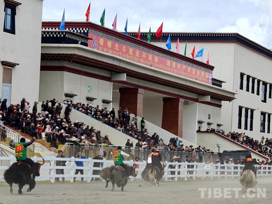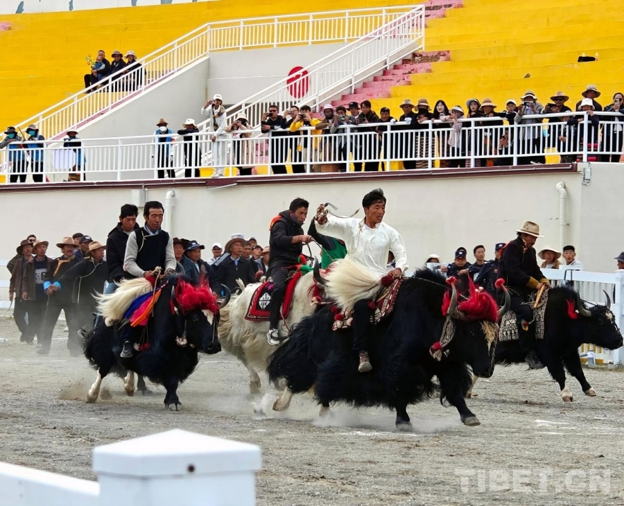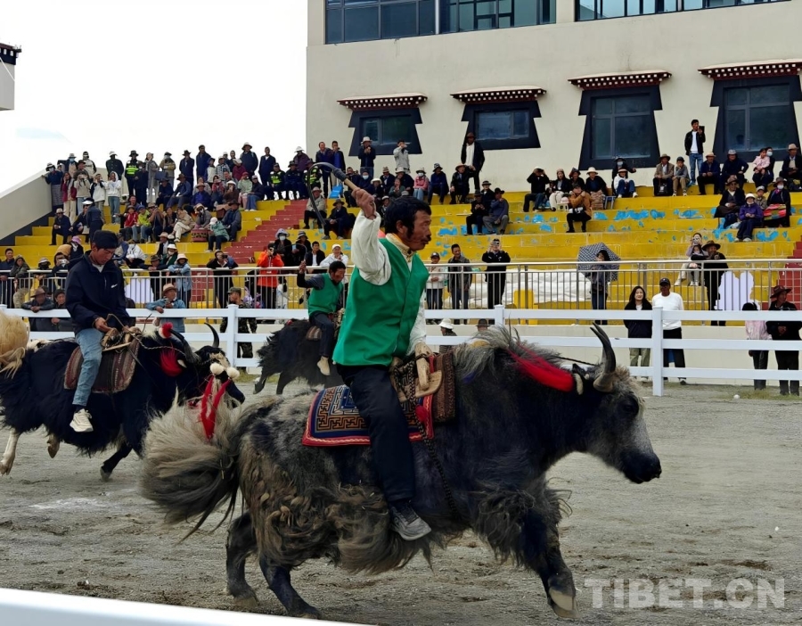 江孜達(dá)瑪節(jié)是當(dāng)?shù)刂匾膫鹘y(tǒng)節(jié)日之一,賽牦牛作為節(jié)日的項目,深受群眾喜愛。比賽中,牦牛在騎手的指引下奮蹄奔騰,場面震撼,引得觀眾驚呼連連、掌聲不斷。這一傳統(tǒng)體育活動不僅展現(xiàn)了當(dāng)?shù)剞r(nóng)牧民精湛的馴牛技藝和勇敢精神,也豐富了群眾的文化生活。(中國西藏網(wǎng) 記者/次旦拉姆)