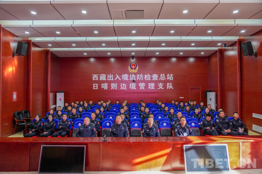 圖為日喀則邊境管理支隊(duì)機(jī)關(guān)組織民警收聽(tīng)收看紀(jì)念中國(guó)人民抗日戰(zhàn)爭(zhēng)暨世界反法西斯戰(zhàn)爭(zhēng)勝利80周年大會(huì) 攝影:葉軼