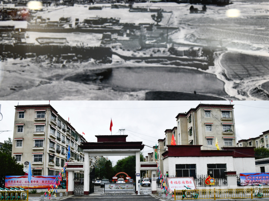 圖為西藏自治區(qū)日喀則市桑珠孜區(qū)城北街道幸福社區(qū)的新舊對(duì)比 攝影:趙振宇