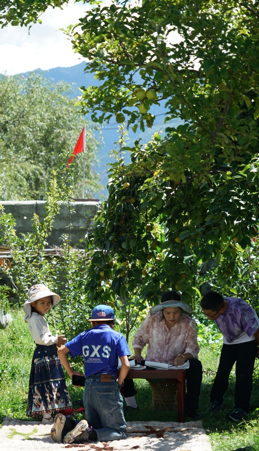 “你看,那棟帶花園的就是次仁羅布家。”順著駐村第一書記任東振手指的方向,一棟新房在陽光下熠熠生輝。院子里花團(tuán)錦簇,梨花樹下,女主人尼瑪曲珍正陪孩子們寫作業(yè),陽光透過樹葉的縫隙灑下,歲月靜好。