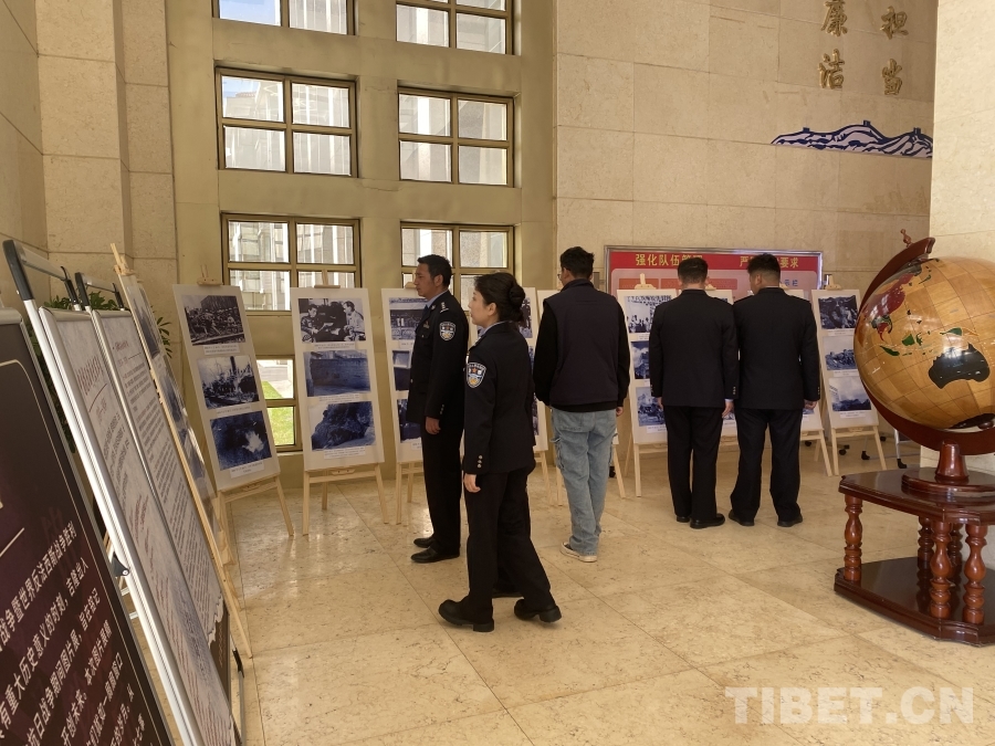 圖為吉隆出入境邊防檢查站組織民警參觀主題圖片展 攝影:肖富貴