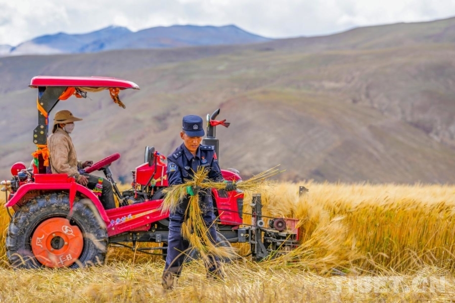 中國西藏網(wǎng)訊 金秋時節(jié),青稞飄香。9月底,西藏日喀則邊境管理支隊涅如麥邊境派出所民警們深入田間,在廣袤的田野上,與農牧民一同俯身勞作,揮鐮收割,搶收青稞。金黃麥浪中,那一抹抹“警察藍”與辛勤的群眾構成了一幅警民情深、秋收喜悅的動人畫卷。(中國西藏網(wǎng) 通訊員/葉軼 記者/趙振宇)