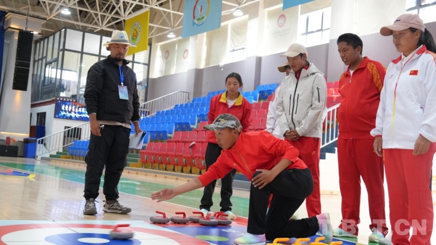 旱地冰壺賽場(chǎng)上,運(yùn)動(dòng)員分為黃、紅兩隊(duì)展開較量?!跋乱唤M,準(zhǔn)備比賽!”賽事組委會(huì)組長(zhǎng)、那曲市特殊教育學(xué)校教師土旦格桑用手語(yǔ)向候場(chǎng)的隊(duì)員發(fā)出指令。比賽中,隊(duì)員們不斷調(diào)整發(fā)力角度,團(tuán)隊(duì)之間積極溝通、默契協(xié)作,現(xiàn)場(chǎng)緊張有序,運(yùn)動(dòng)員們輪番上陣,在投擲線后凝神屏息,專注瞄準(zhǔn)與投擲。每一位參賽者都克服了身體上的困難,以頑強(qiáng)的意志投入比賽,他們的出色表現(xiàn)贏得了觀眾的連連贊嘆。