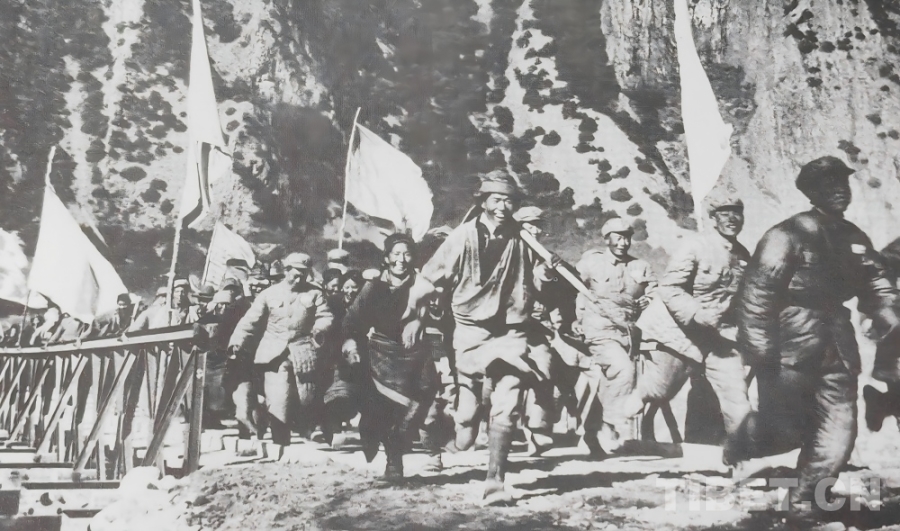 1951年10月,人民解放軍正式進(jìn)駐拉薩,隨著各項(xiàng)工作穩(wěn)步推進(jìn),局勢趨于穩(wěn)定。西藏工委、西藏軍區(qū)同西藏地方政府協(xié)商加快修建康藏公路的問題,于1952年在拉薩成立第一工程局(后改為第一施工局),1953年1月筑路委員會(huì)成立,下設(shè)西線筑路指揮部。進(jìn)藏部隊(duì)、地方干部與各族民工(西線筑路大軍)從拉薩出發(fā),先打通拉薩河南岸至墨竹工卡的山路,再頂著米拉山口的暴風(fēng)雪鋪筑路基,一點(diǎn)點(diǎn)將公路向著巴河的方向延伸。兩支筑路大軍隔著雪山峽谷,卻以同樣的堅(jiān)韌,在高原上刻下屬于中國人的英勇無畏!