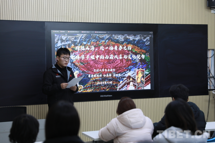 圖為孫嘉浩同學(xué)分享此次赴藏的親身見聞。攝影:畢然