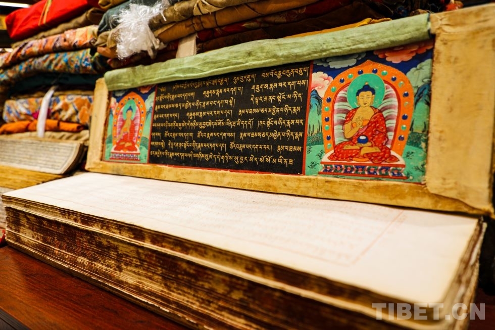 圖為在四川省蓉府藏文博物館中收藏的藏文古籍 攝影:龍真多吉