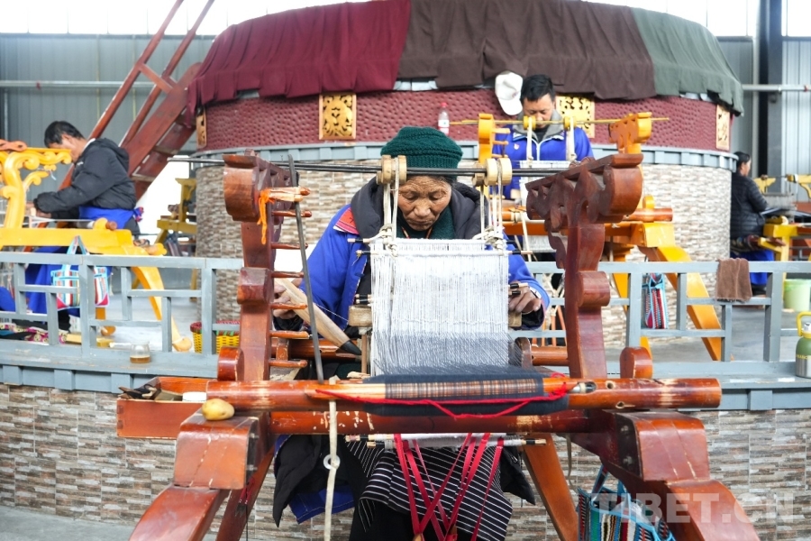 圖為在乃東區(qū)民族嘩嘰手工編織專業(yè)合作社的廠房中,員工正在編織 攝影:張藝彤