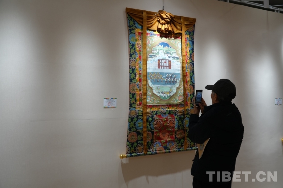 圖為觀眾拍攝展出的唐卡作品 攝影:莫干措