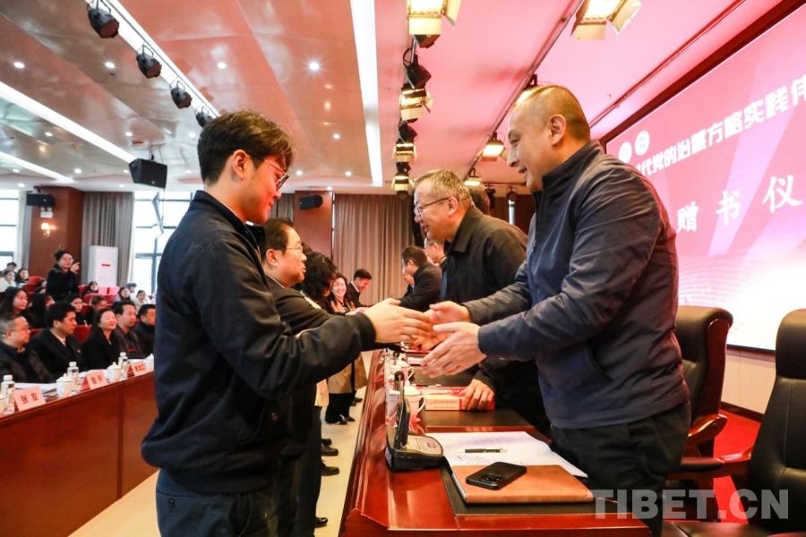 在贈書儀式前,西藏自治區(qū)黨委黨校(區(qū)行政學(xué)院)副校(院)長仁欽旺杰介紹了《新時代黨的治藏方略研究》出版情況,四川師范大學(xué)教授孫勇圍繞該書展開點(diǎn)評。該書是全面系統(tǒng)闡釋新時代黨的治藏方略的理論著作,為新時代黨的治藏方略研究注入新的活力與動力,具有重要的理論價值和現(xiàn)實(shí)意義。