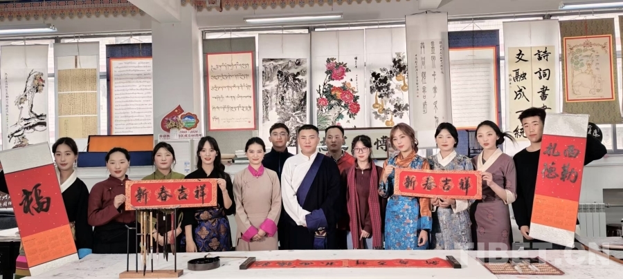 新春與藏歷新年之際,西藏民族大學(xué)書法基地舉辦的“送萬福進萬家”“扎西德勒獻給您”活動成為各族師生間溫暖的情感紐帶。各族師生齊聚一堂,揮毫潑墨,用漢藏雙語書寫對新年的美好祝福。一副副春聯(lián)、一張張“?!弊?,承載的不僅是吉祥寓意,更是濃濃的情誼,讓“在一起”的溫暖在節(jié)慶氛圍中升華。在學(xué)校運動會上,西藏民族大學(xué)書法基地聯(lián)合社團開展文化志愿服務(wù),將體育競技的“動”與書法藝術(shù)的“靜”巧妙融合。千余幅即興創(chuàng)作的漢藏文書法作品被贈予運動健兒和師生,讓拼搏精神與人文底蘊交相輝映,在互動中增進了彼此的情誼。西藏民族大學(xué)書法基地帶領(lǐng)學(xué)生積極“走出去”,參與西安外國語大學(xué)民族團結(jié)教育月等活動,拓寬學(xué)員視野。更值得一提的是,學(xué)生代表扎西曲吉登上了第十六屆海峽兩岸(廈門)文化產(chǎn)業(yè)博覽交易會的舞臺,現(xiàn)場創(chuàng)作的“團結(jié)統(tǒng)一”漢藏雙語作品,以其深刻寓意和藝術(shù)美感,成為傳遞各民族交往交流交融深情的“文化名片”,并被組委會收藏。