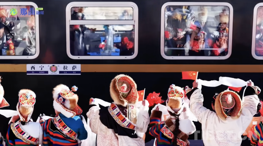 圖為首批旅客在雁石坪乘降所乘車遠(yuǎn)行 圖源:那曲融媒