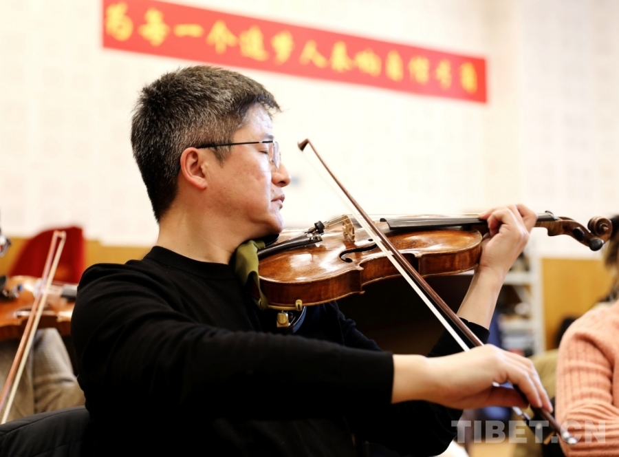 圖為中央歌劇院交響樂團首席杜玄正在排練大型交響組曲《夢·路》 攝影:劉莉