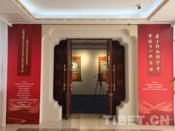 圖為“唐卡新韻譜華章 雪域同心共輝煌——鑄牢中華民族共同體意識(shí)”致敬西藏自治區(qū)成立60周年壯麗征程唐卡展展廳
