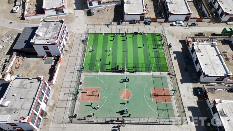 圖為長所鄉(xiāng)森嘎村新建的兩塊標準化運動場地 攝影:趙振宇