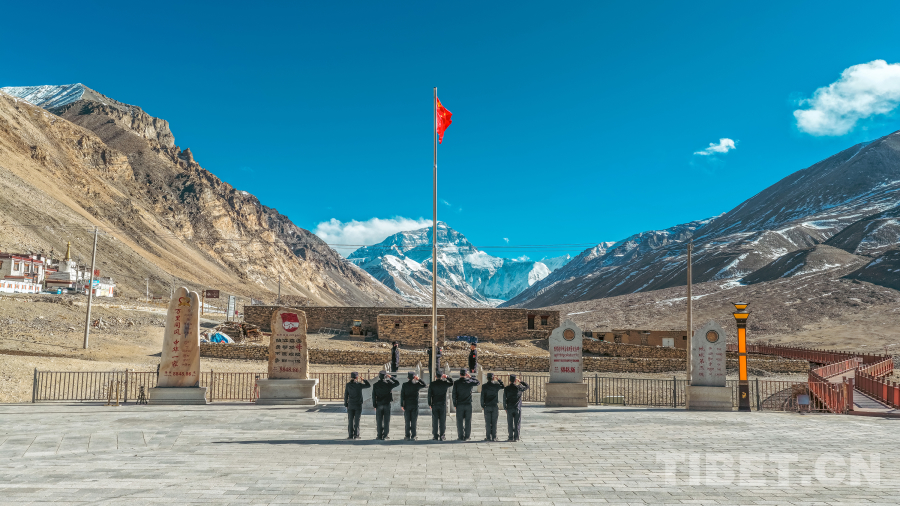 海拔5200米的珠峰大本營(yíng)廣場(chǎng)上,西藏邊檢總站日喀則邊境管理支隊(duì)珠峰邊境派出所全體民警整齊列隊(duì)。高原的風(fēng)掠過(guò)雪山,揚(yáng)起深色制服的衣角。