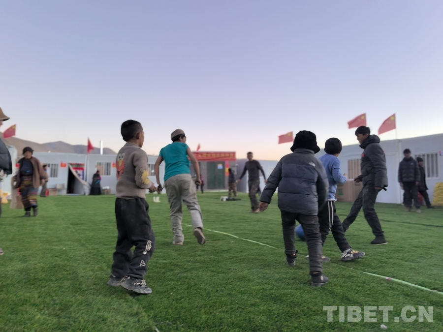 圖為少年們?cè)谂R時(shí)安置點(diǎn)的板房間踢足球 攝影:陳明(攝于2025年)