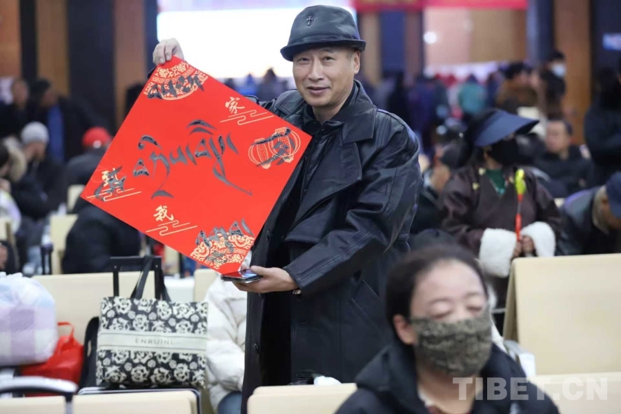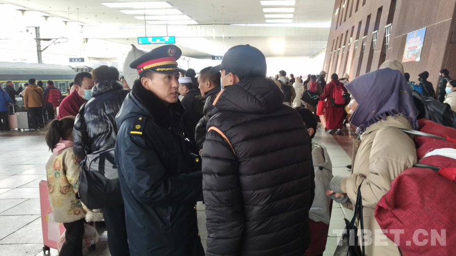 圖為春運首日拉薩站為旅客送上祝福