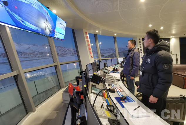 普蘭機(jī)場(chǎng)工作人員春節(jié)期間在塔臺(tái)指揮飛機(jī)起降