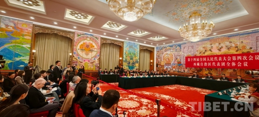 十四屆全國(guó)人大四次會(huì)議西藏代表團(tuán)開(kāi)放團(tuán)組會(huì)議受到中外記者高度關(guān)注