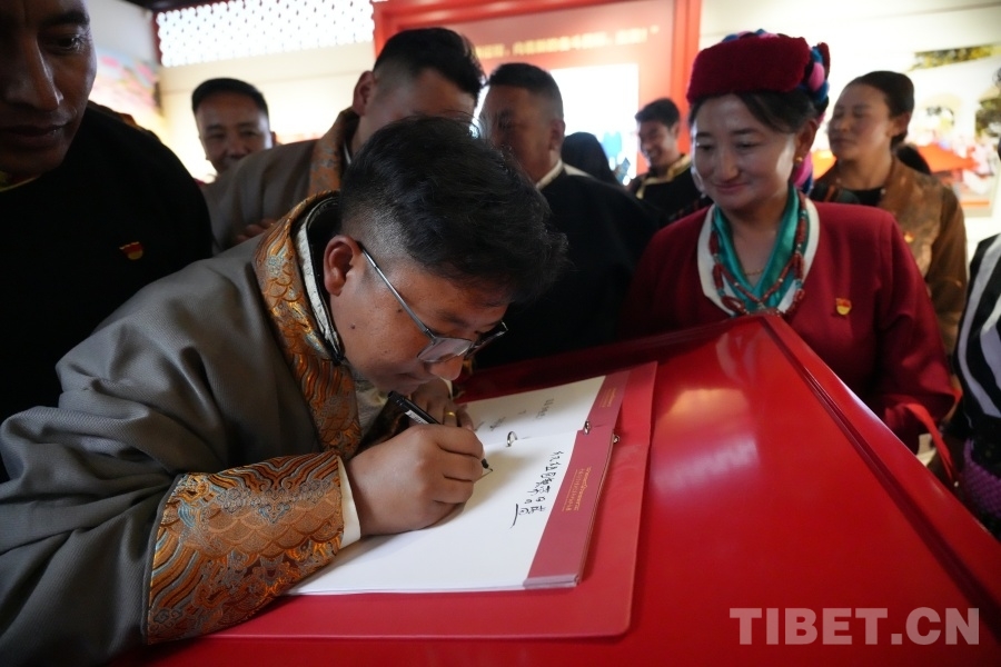 在蒙藏學(xué)校舊址,山南基層群眾代表在參觀后紛紛在留言簿留言,表達(dá)對祖國的熱愛。 攝影:王茜